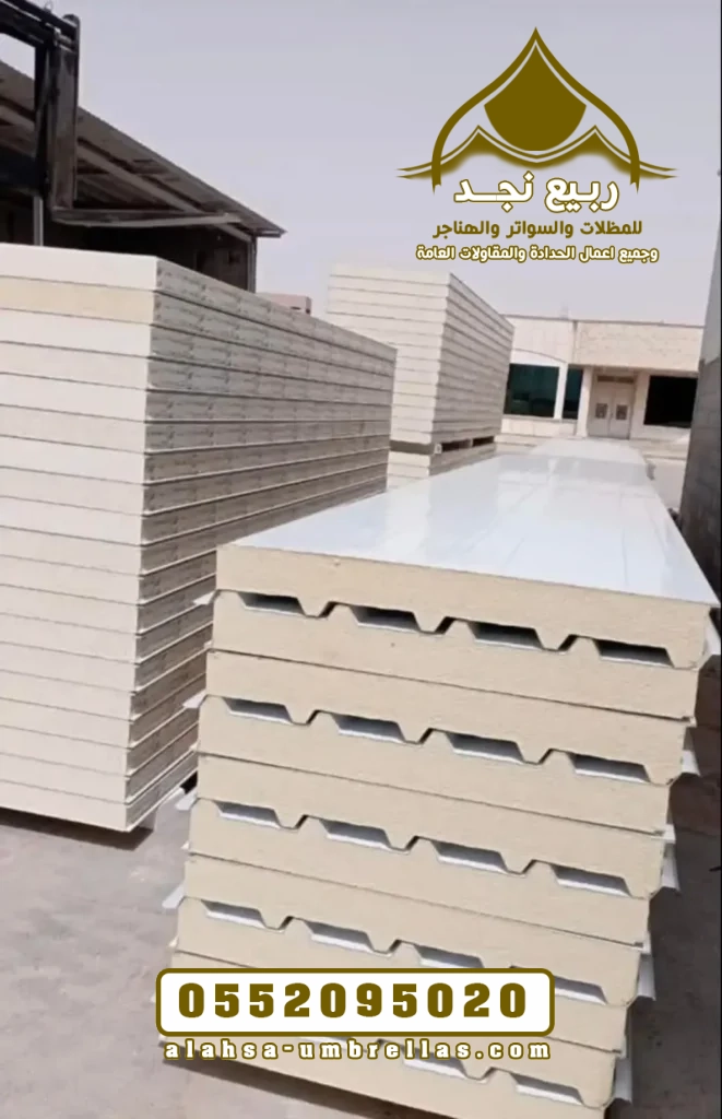 - نوع العازل: (بولي يوريثان PU، بوليستيرين EPS، صوف صخري Rockwool).